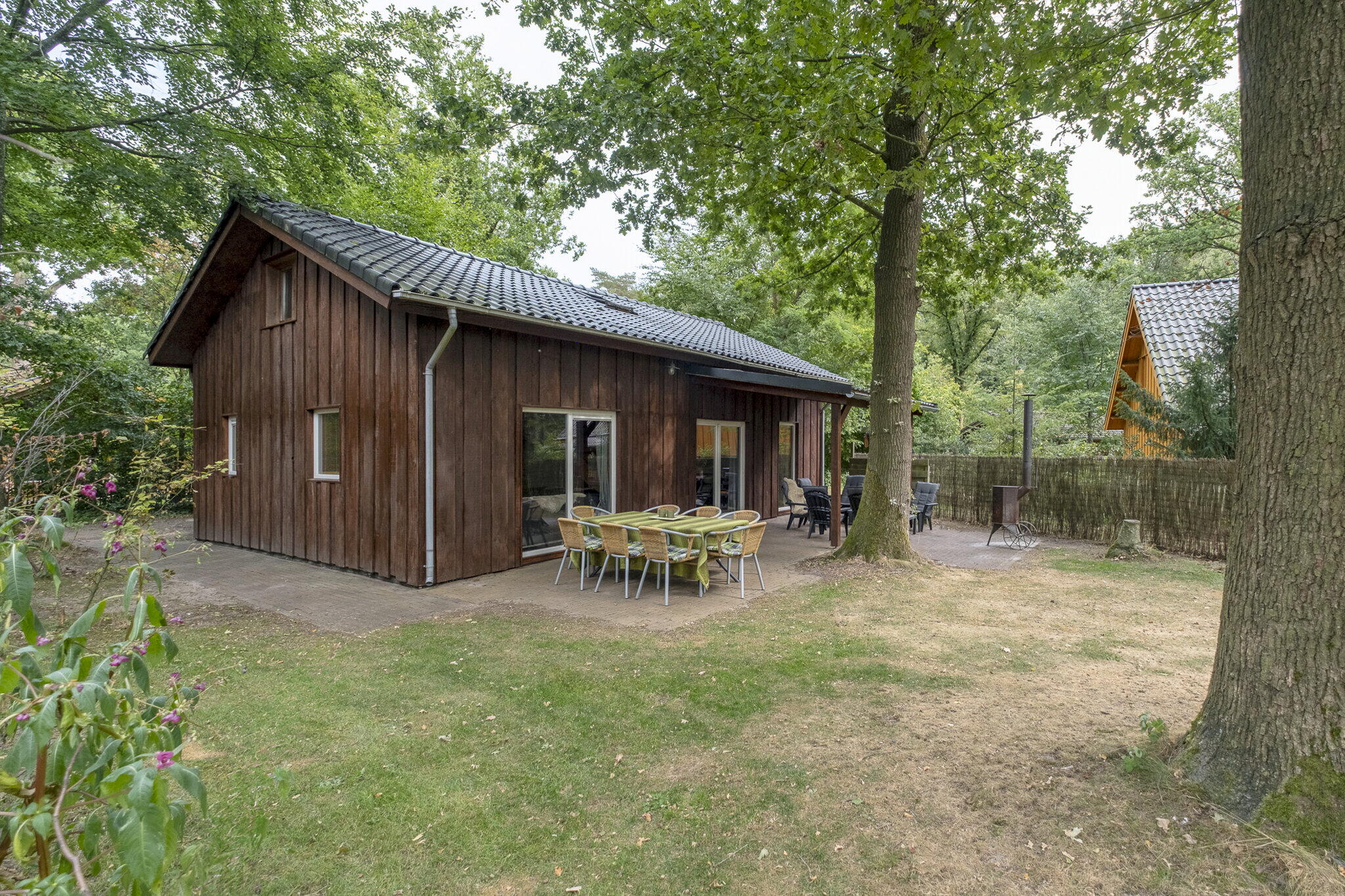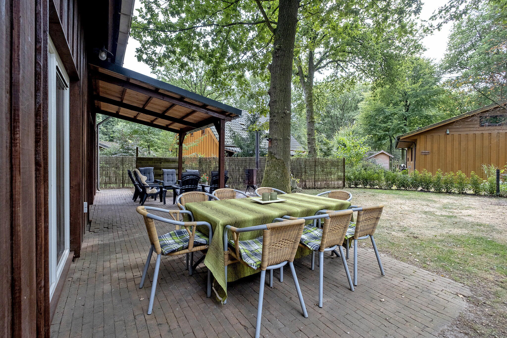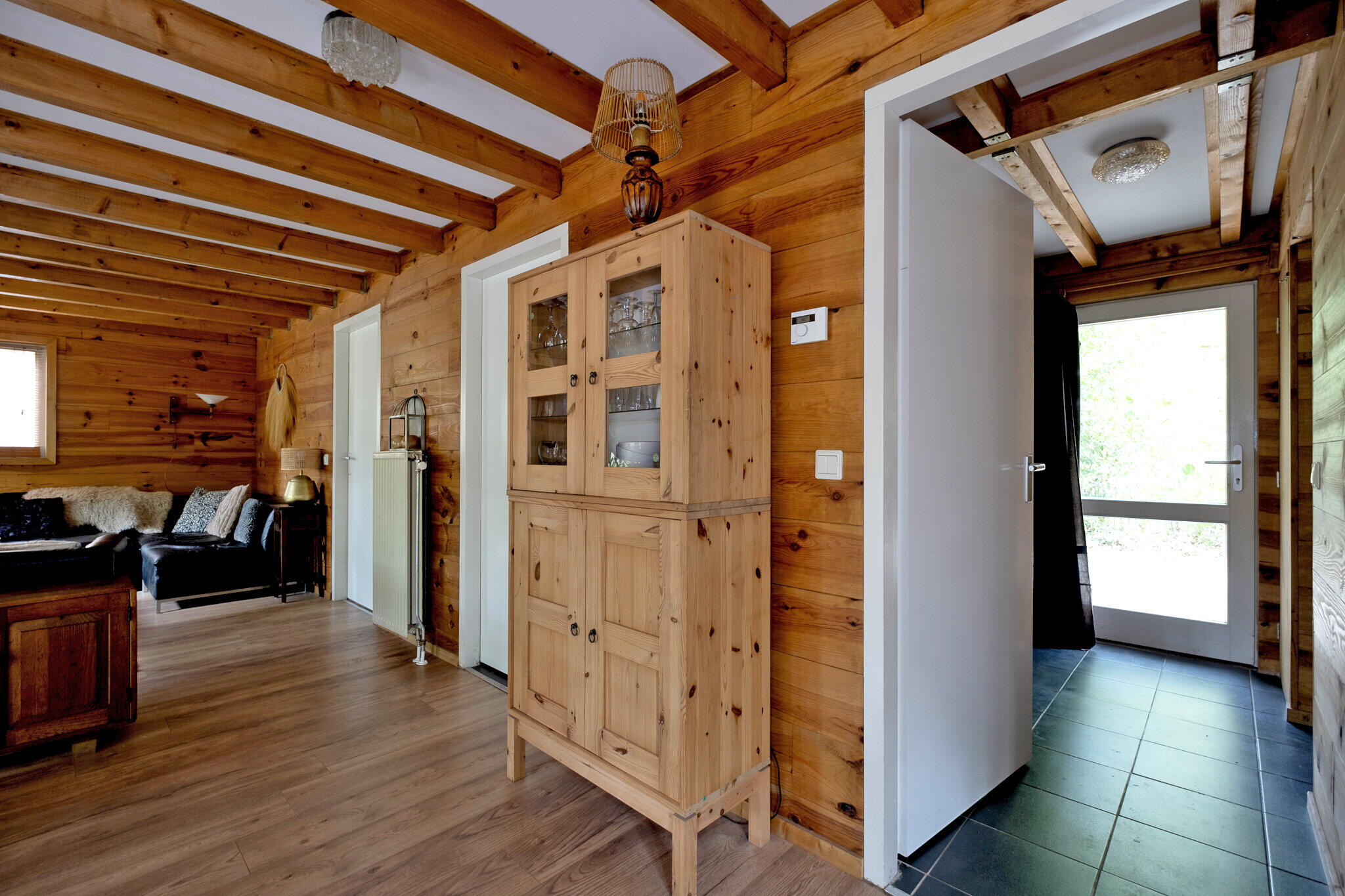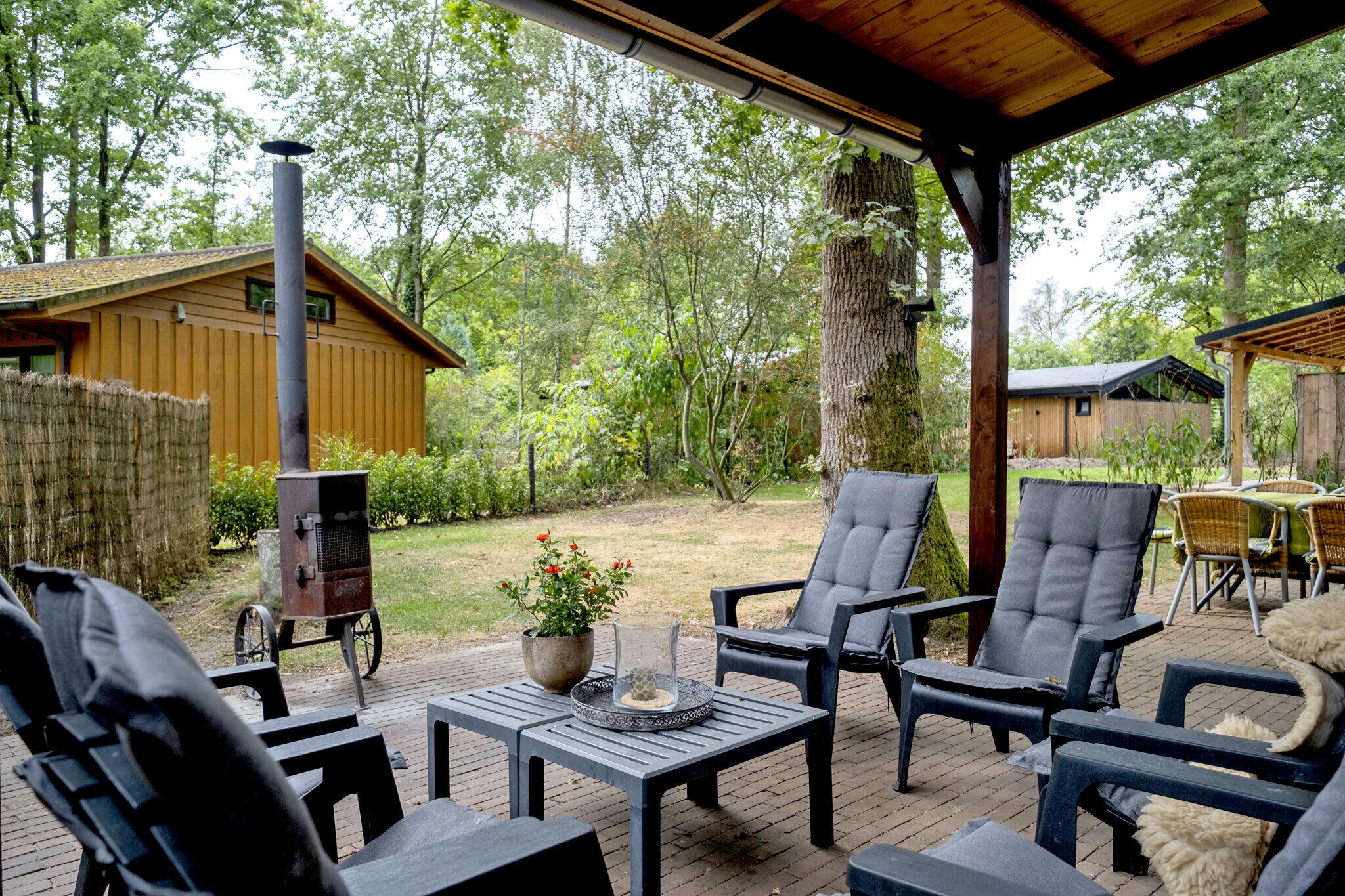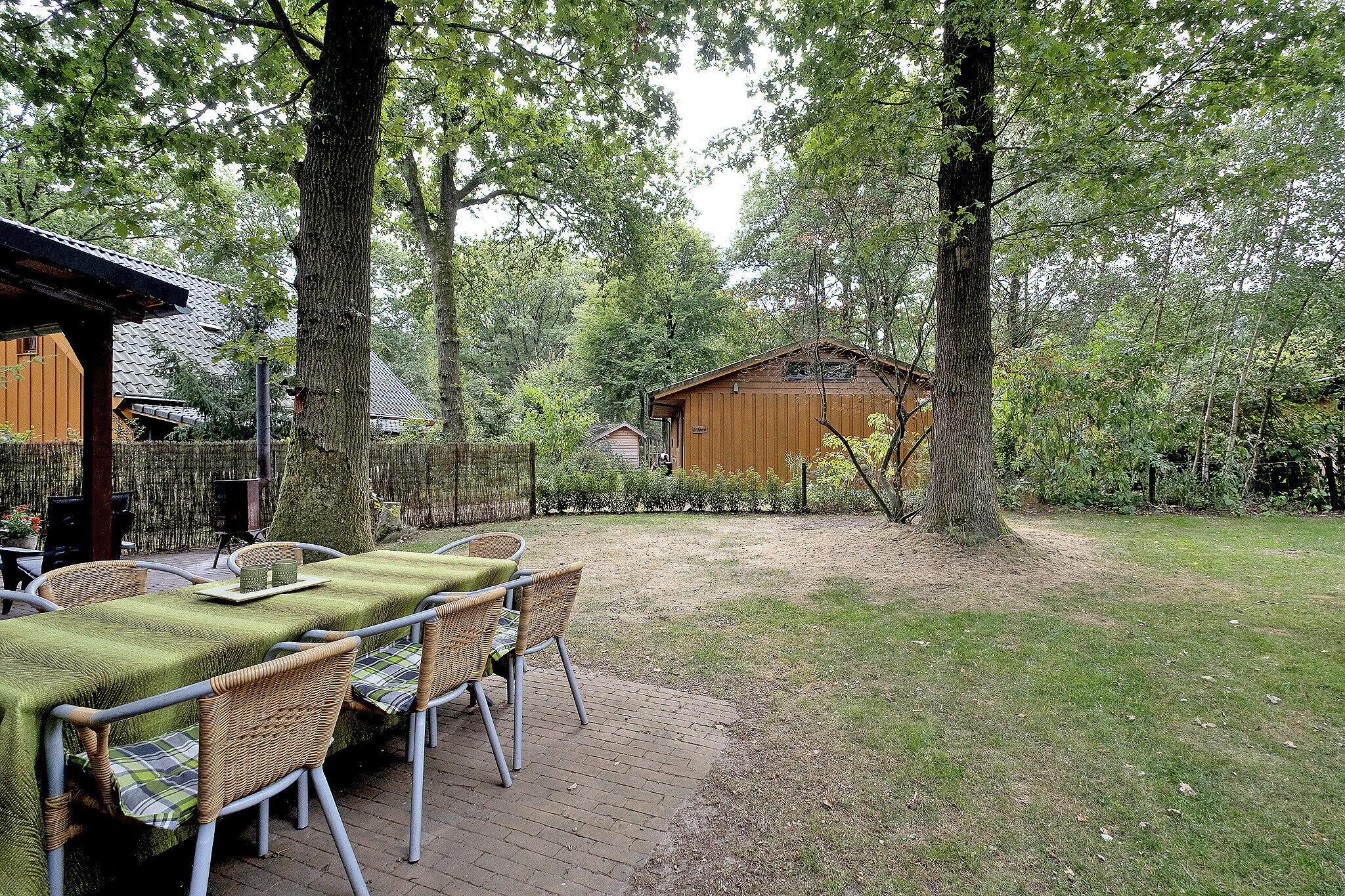 De woning ligt op een fijn perceel met een ruime overkapping, waar je volop kunt genieten van de omliggende natuur, omgeven door diverse bomen en struiken.