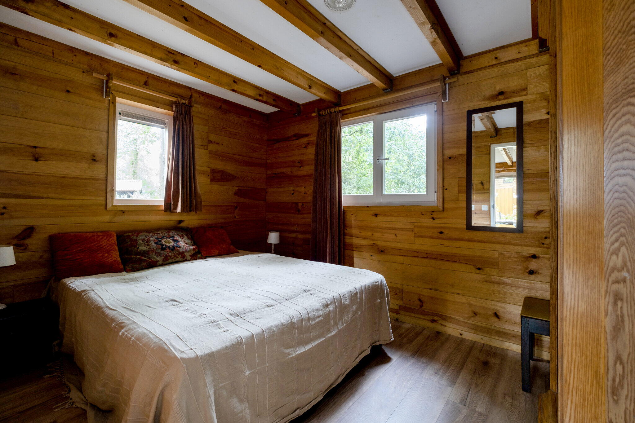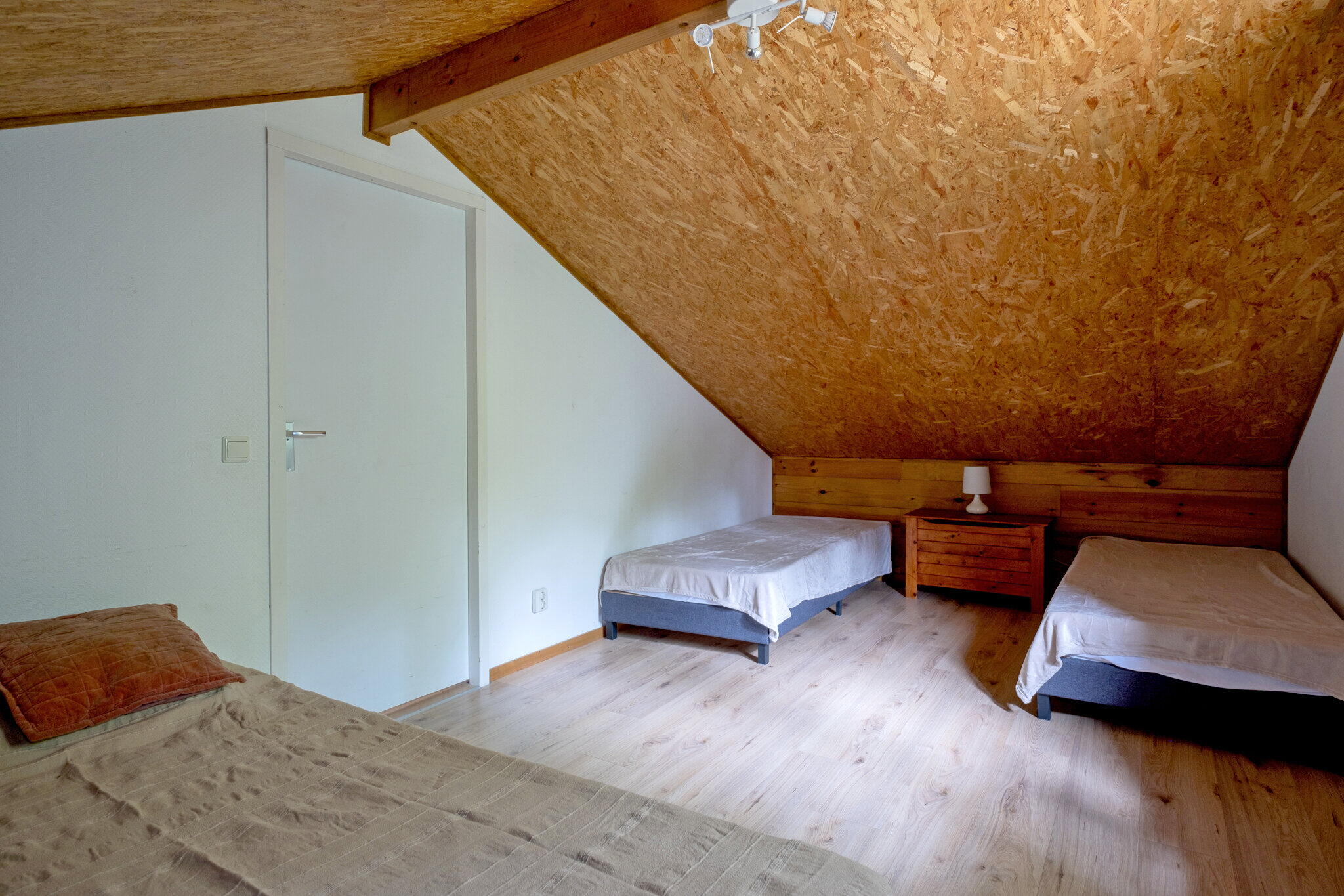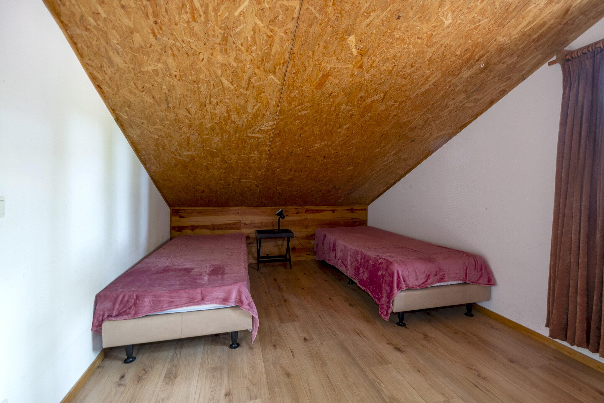 Via een vaste trap is de overloop bereikbaar. Deze geeft toegang tot twee royale slaapkamers(ca. 12m² en ca. 11m²). (De vakantiewoning is op dit moment ingericht voor 10 personen waarbij beide slaapkamers zijn voorzien van 4 slaapplekken.)